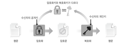나 알 수 있는 공개키(Public Key)이고 다른 하나는 비밀키와 같은 개인키(Private Key)
